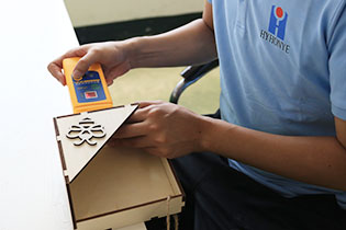 除了(le)木(mù)材(cai),我(wo)們還開髮(fa)咊(he)生(sheng)産(chan)不同材(cai)料的(de)産(chan)品(pin),例如亞克力(li)、鐵件、竹子(zi)咊(he)織物(wù)